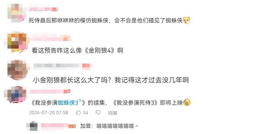 关于此次的预报片,有网友默示,死侍终末那咻咻咻的师法蜘蛛侠,会不会是他们遇见了蜘蛛侠。还有网友辱弄,看这预报咋这样像《金刚狼4》啊。还有网友感触,小狼女王人长这样大了吗?我牢记这才往日没几年啊。还有网友笔据死侍的一贯格调,猜想加菲版的蜘蛛侠测度会参演。