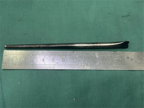 在刘得龙的指引下,黄巍鹏为王先生定制经口腔取异物的微创手术决策,这种无需颈部开刀的调理格式,透彻撤废了患者的挂念。术中,医师精确定位,神秘避让咽部的蹙迫血管和神经,通过微创手术渐渐剥离、牵拉,最终将这根12厘米的不锈钢筷子圆善取出。术中出血量少许,无手术并发症,患者和家属悬着的心终于落地。