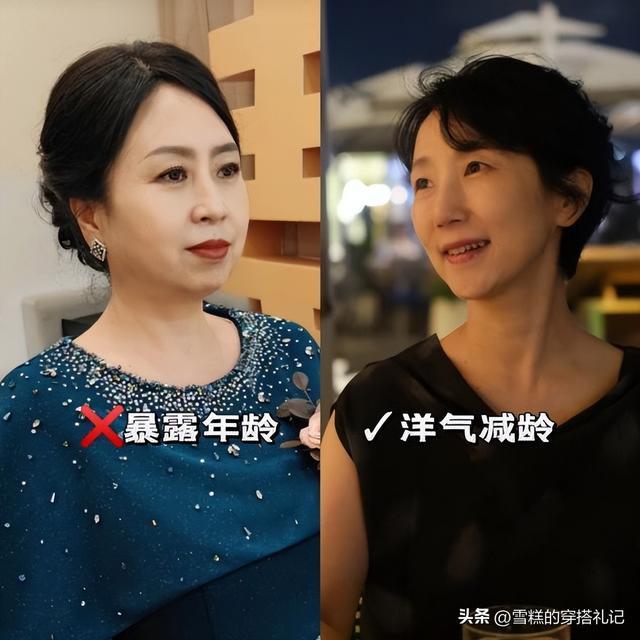 中年女性代谢变慢,身段不免会有所发福,大概因为胶原卵白流失导致体态不再挺拔。长发自己具有分量,会向下拉扯视觉要点,让东谈主显得矮胖、敦实。短发去除了实足的分量,让颈部线条得以开释,不仅显得脖子修长,还能在视觉上拉长身高比例,让东谈主看起来愈加微弱挺拔,灵验躲避“虎背熊腰”的既视感。